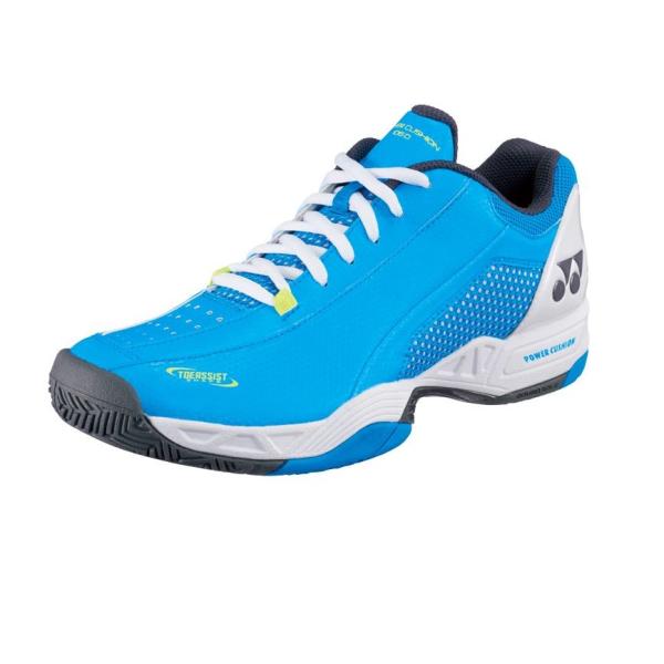 シューズは結構自信あります!おそらくヨネックスのパワークッション106D、色はスカイブルーじゃないかと思います!